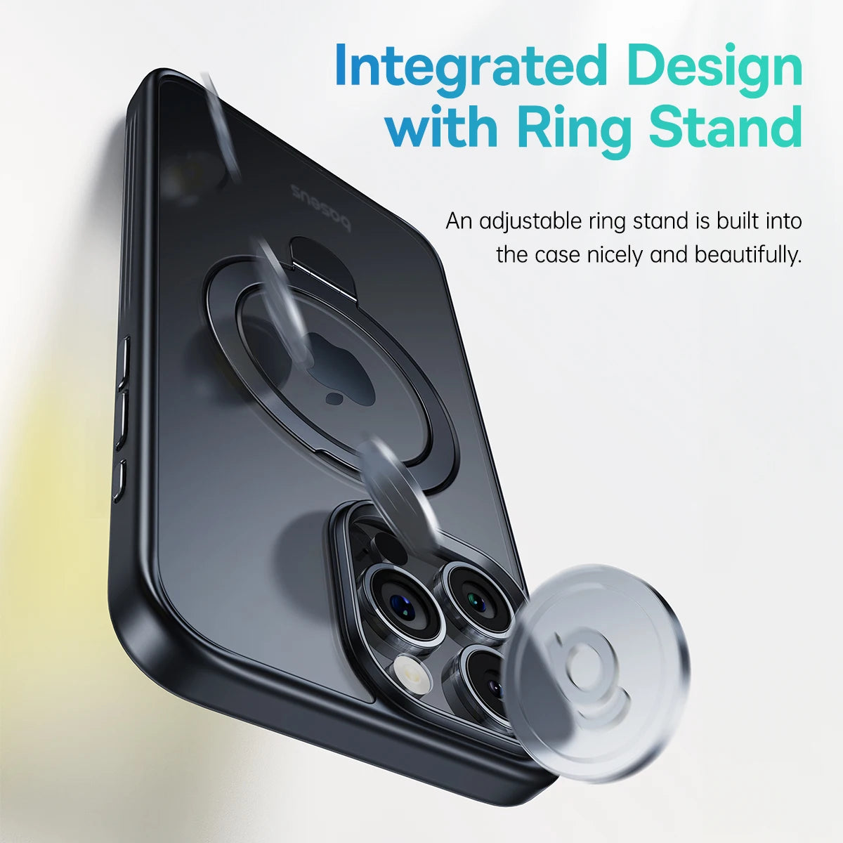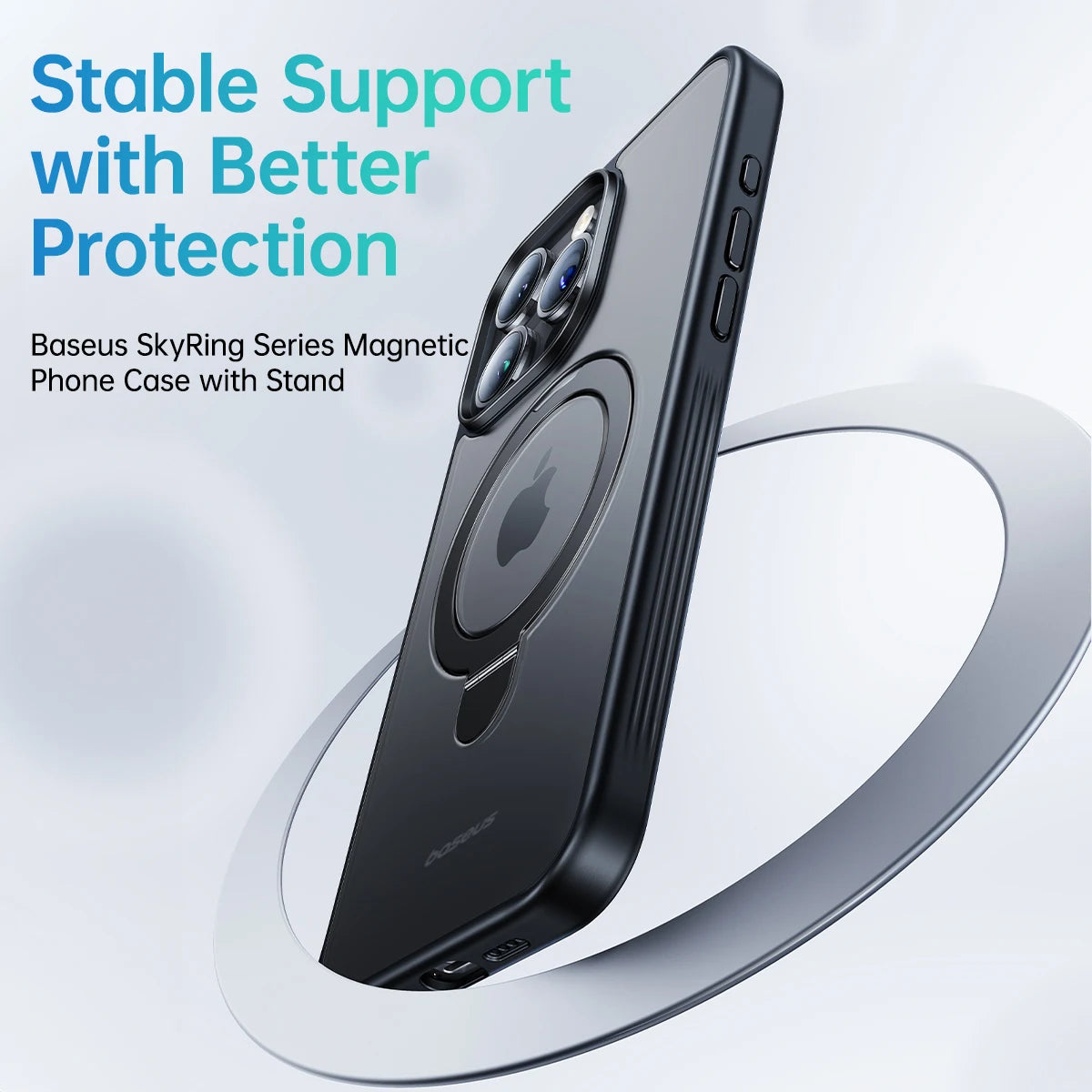 Baseus Magnetic Stand Case for iPhone 16 15 14 13 Pro Max Plus Case 180° Adjustable Kickstand Ring Cover Magnetic Charging Case